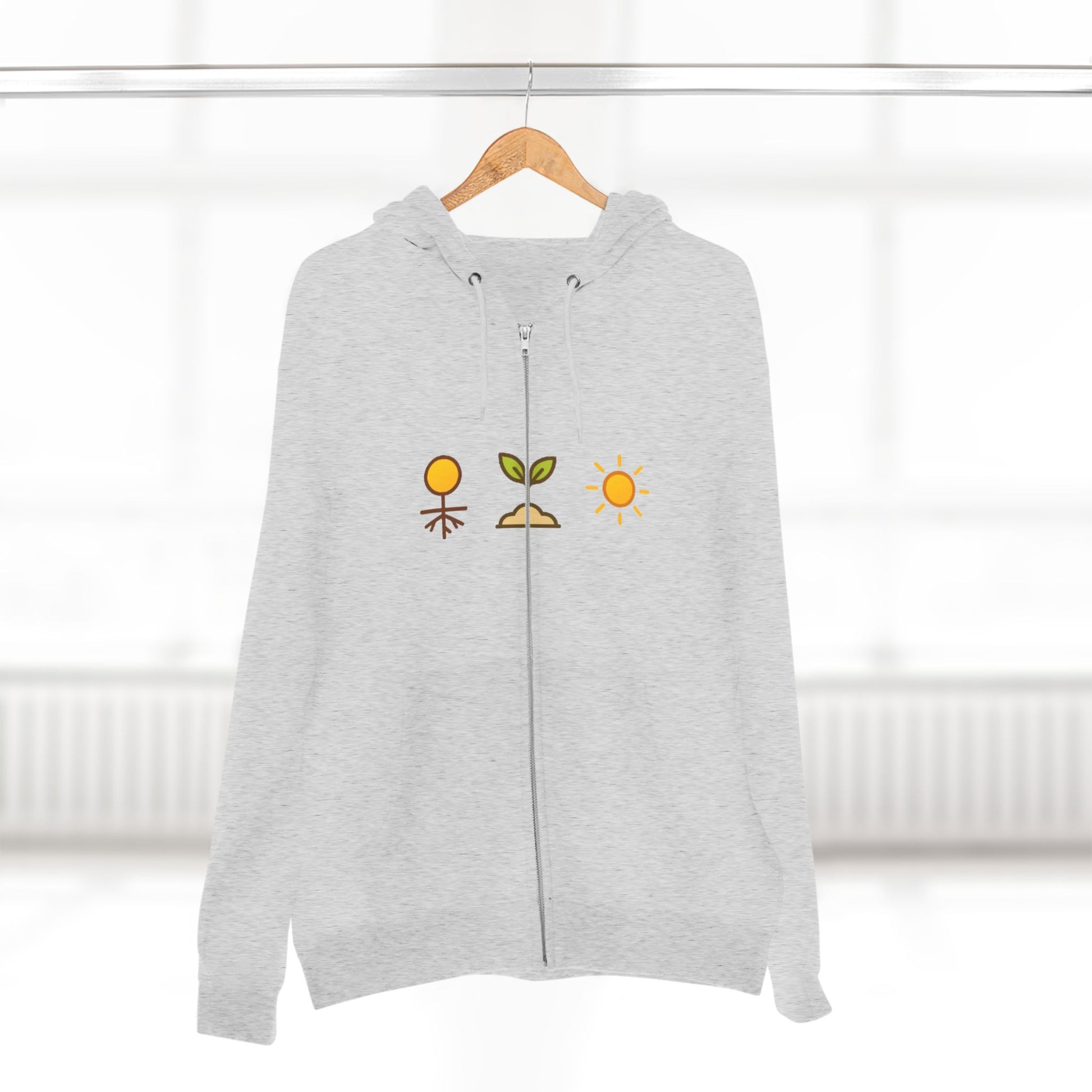 Stay rooted, rise gently, and glow in your own time with the Grounded. Growing. Glowing Zip Hoodie. This hoodie tells a quiet story of growth—from seed to sun. It’s the kind of layer you reach for on cool mornings, long walks, and slow days spent tending to your space and yourself.